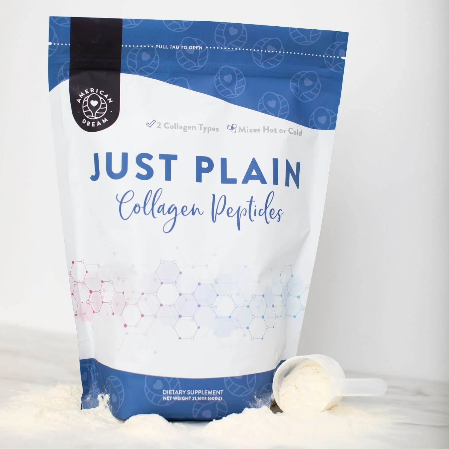 Just Plain, unflavored Collagen Peptides (Grass-Fed Hydrolyzed Collagen Type I & Type III Bovine). Ready for you to use in your recipes or mix in your favorite drinks or smoothies. Grass-fed, pasture-raised collagen with a boost of support for your hair, skin, nails, bone and joint health. Â