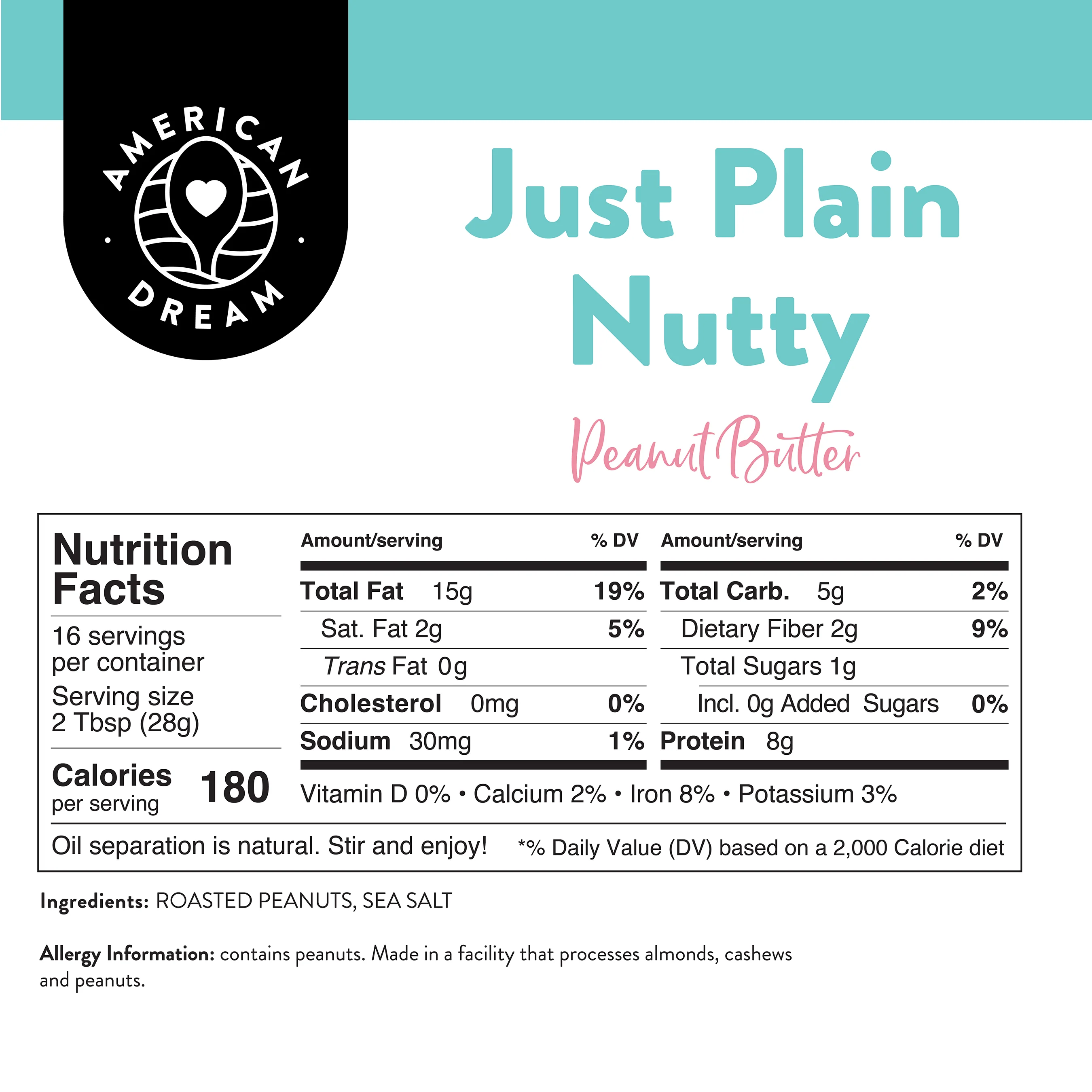 Nothing beats all natural. Enjoy the delicate subtle flavor of roasted peanuts and a touch of sea salt. Ground to perfection, you’ll love the silky, drizzly texture of our one-of-a-kind natural peanut butter. Move over big box brands, nothing beats made to order freshness, free from unnecessary added oils, thickeners and stabilizers.Â